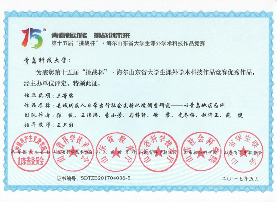 挑战杯三等奖