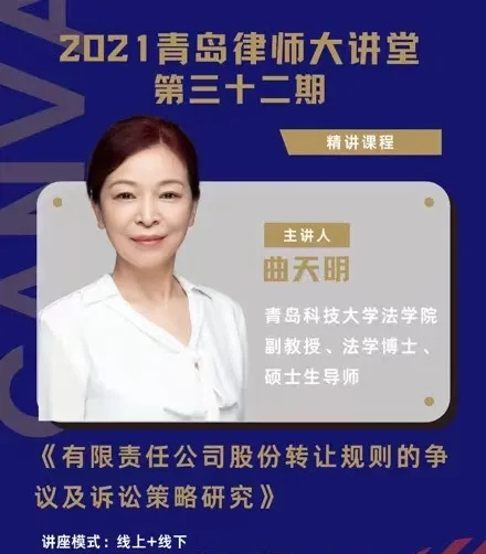 近日,由青岛律师公司主办、市律协公司专业委员会承办的第三十二期青岛律师大讲堂在诺德广场市律协会议室举行。本期大讲堂公司专委会邀请到伟德国际1946巾帼普法宣讲团负责人曲天明老师主讲。