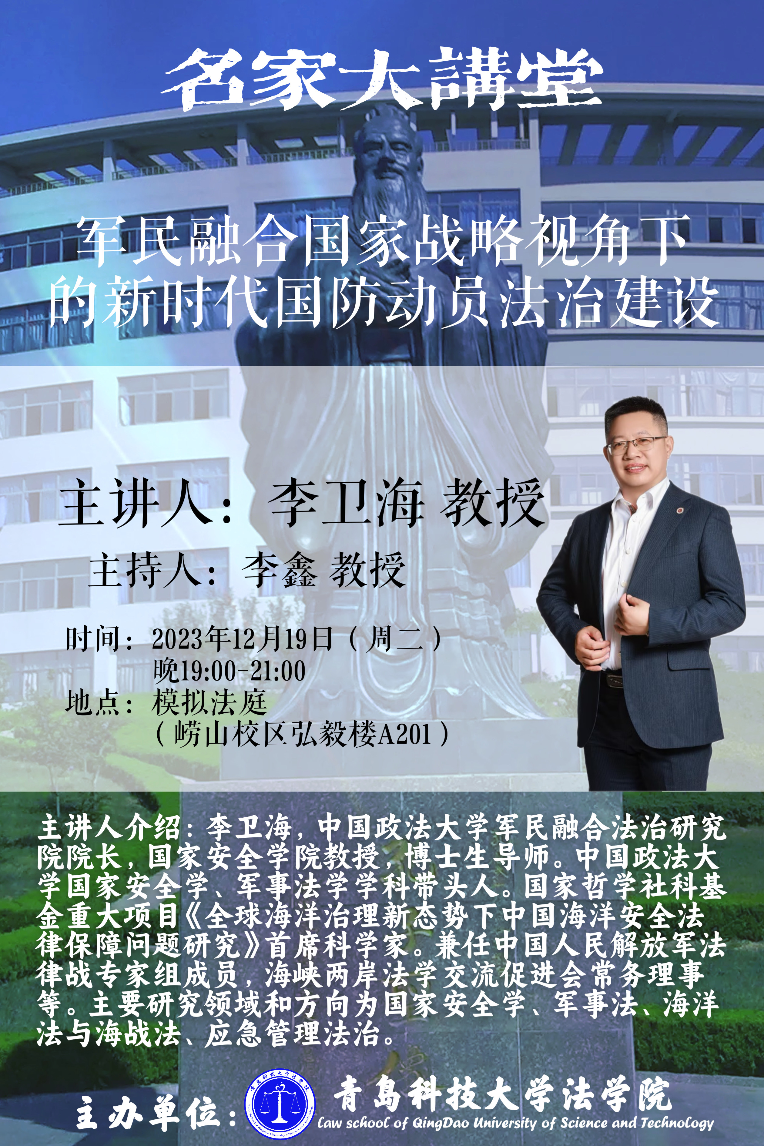 伟德国际1946名家大讲堂:军民融合战略视角下的新时代国防动员法治建设