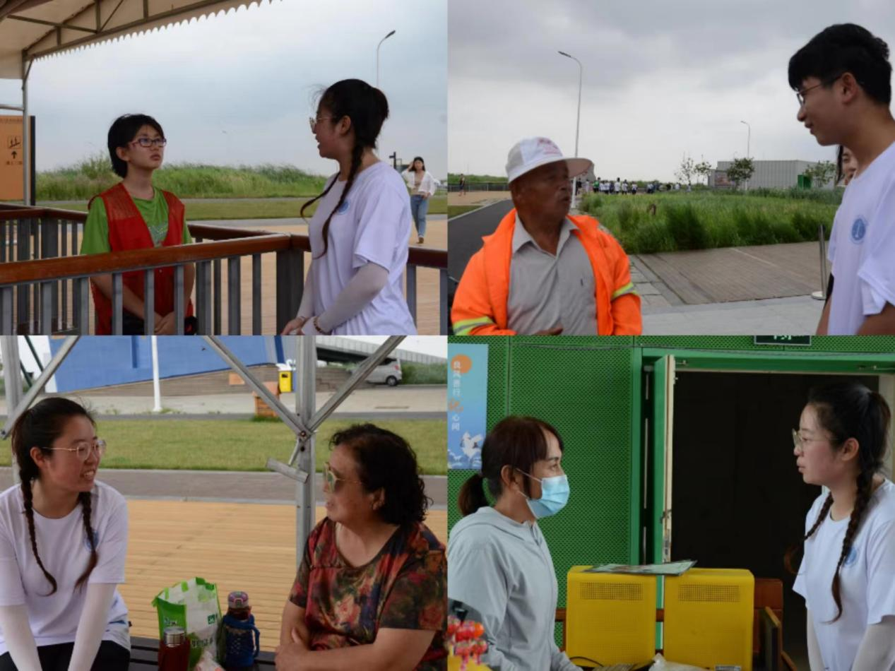 随后,在保护区的终点——黄河入海口,队员们近距离观察了黄河,并采访了前来游玩的游客及保护区工作人员。“黄河的环境确实比以前好了很多,植被比以前来的时候茂盛了很多,空气也清新了很多。”一位在黄河入海口参观的爷爷如是说。一位清洁工大妈的回答最令队员们记忆深刻,阿姨说道:“这个保护区啊,环境好,面积大,以前是一片荒滩,现在绿化也变好了。一定要热爱我们的祖国。”阿姨对黄河生态环境改变的感受和对祖国的热爱令人动容。