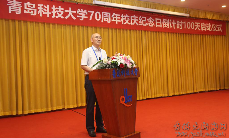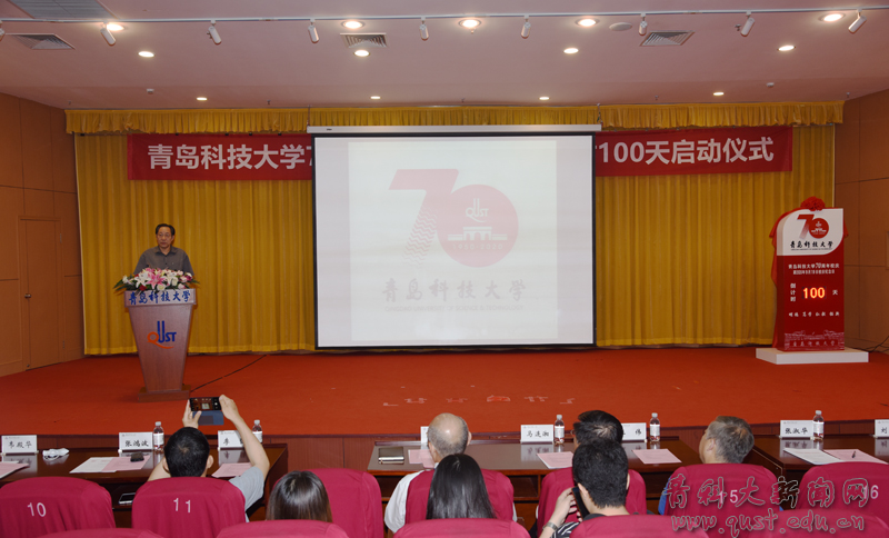 党委副书记张鸿波主持仪式,并介绍了青科大70周年校庆标识构成元素和含义。