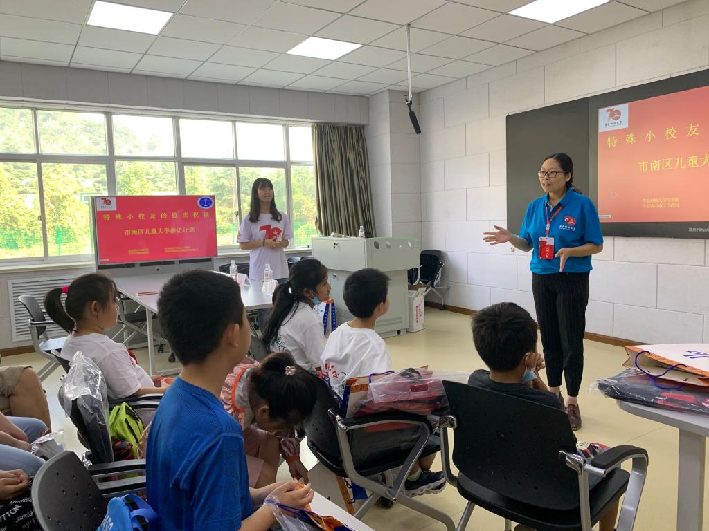 这群特殊的“小员工”,他们是来自市南区困难家庭的15位小同学们。自今年疫情以来,青科大伟德国际1946社工系学子发挥自身专业优势,为有需求的儿童提供了一对一线上助学陪伴服务,暑期社会实践又组织了增能成长营等线下活动,与这些小同学们相识结对,成为了知心伙伴。今天这些小同学为了表达谢意,来到校园为科大七十周年华诞送上祝福。