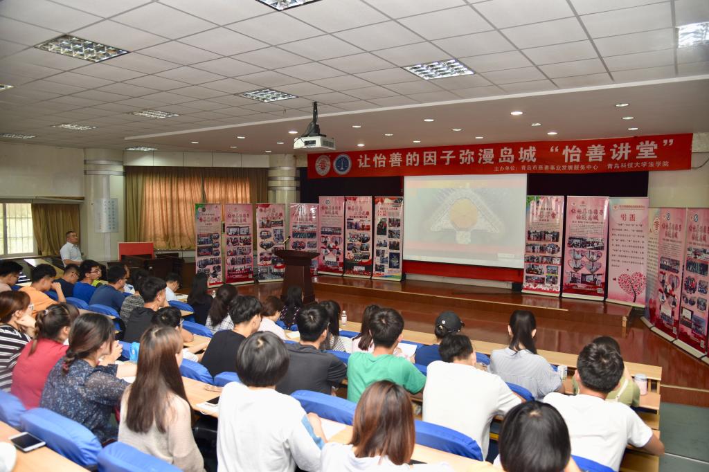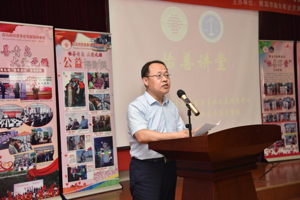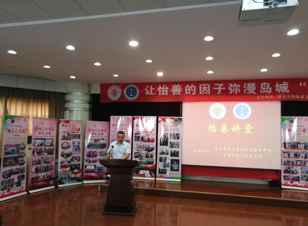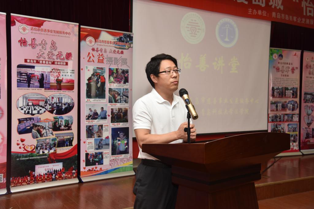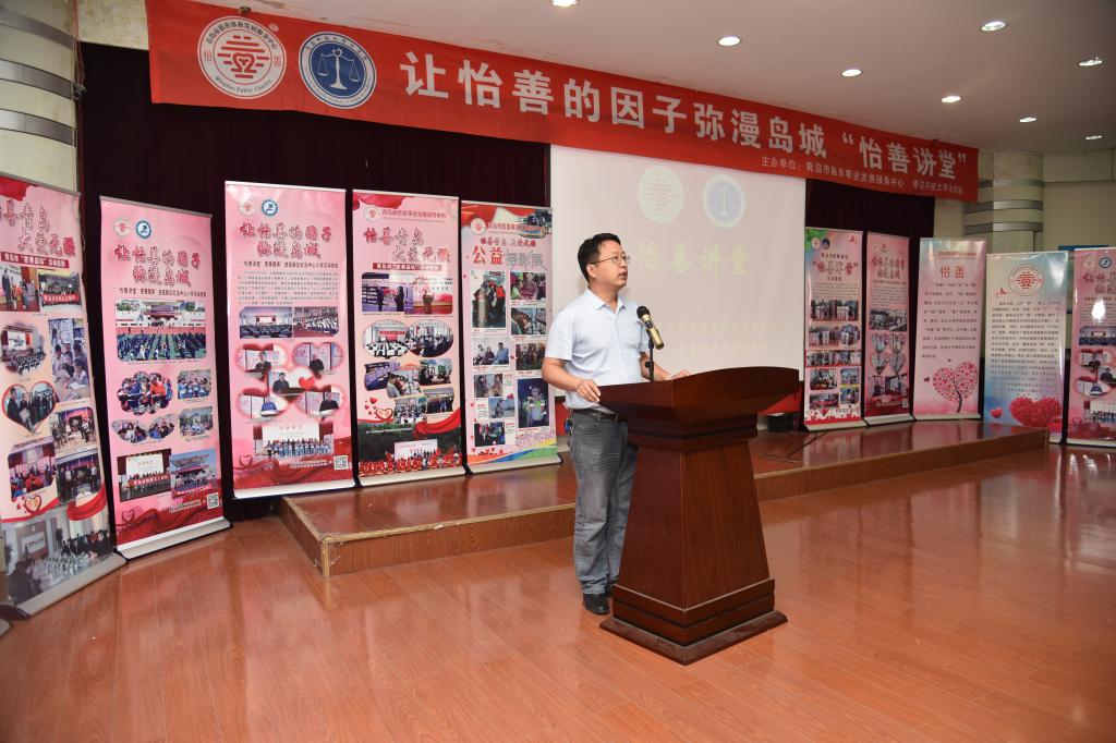 伟德国际1946经理王金堂为活动致辞。首先他介绍了伟德国际1946的基本情况以及近年来在志愿服务、专业实践等方面取得的成绩,并对青岛市慈善事业发展服务中心将“怡善讲堂”带到伟德国际1946表示热烈欢迎,希望校地继续加强合作,在校园中营造“人人慈善、快乐慈善”的良好氛围。