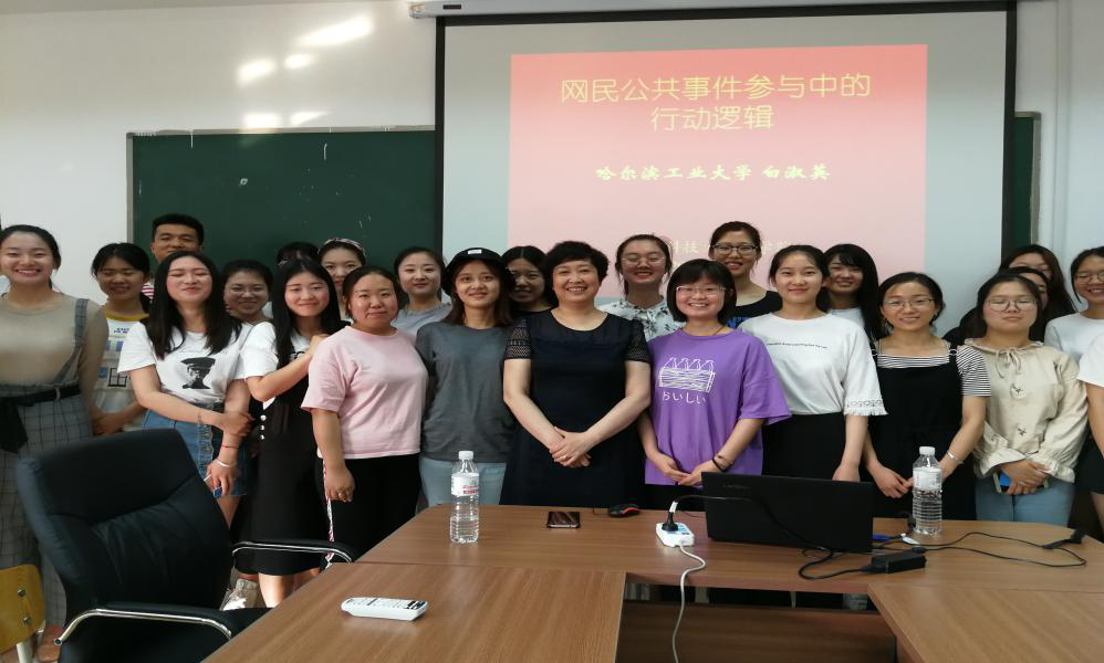 白淑英教授经过简要的自我介绍后,从“行动类型化与多重效应”、“锚定内隐的情感经验”等几个方面,从目前社会学最前沿的理论知识的角度,指出,目前我国网民的参与主要是由一个又一个的具有话题型的“事件”所引起,又经过具有强烈认知特点的“情感”的推动,目前是我们国家网民参与的最主要形式。白淑英教授又通过“陕西榆林产妇事件”的网民言论参与等案例,对上述观点做了进一步的阐释。白教授在最后指出:在社会学家看来,行动是具有理性或者非理性的。但是网络事件中的网民行动,不能简单地用理性或者非理性来涵盖。它既包括情绪、情感等非理性行为,也包含了通过公共参与影响政府的工具理性行为,还包含了正义、真、美等的价值理性行动,它更具有复杂性。白淑英教授鼓励同学们对如何在既保持网民广泛参与和保持社会主流共识的前提下,实现网络环境的现代化治理进行研究。