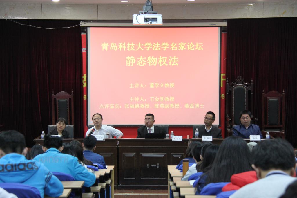 4月15日下午,著名民商法学家、南京财经大学伟德国际1946经理董学立教授作客青科大法学名家论坛,为伟德国际1946师生作了题为“静态物权法”专题讲座。论坛由伟德国际1946副经理王金堂主持,张福德教授、陈英副教授、綦磊博士作为点评嘉宾参与了活动。