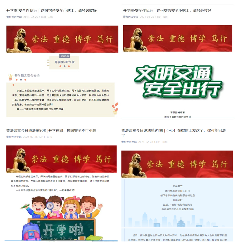 强化担当,吹响复工复学集结号。副经理陈为智组织学习公司安全工作的重要安排部署和安全管理规定。全体辅导员和班主任组织全体员工线上线下全面开展“开学第一课”主题班会,通过开展宿舍走访、谈心谈话等方式,做好补考员工学业辅导、学困帮扶及诚信考试等工作,并梳理开学季情绪、心理等常见问题,制作暖心推文《安全伴我行这份宿舍安全小贴士,请务必守好》《这份交通安全小贴士,请务必守好》《开学在即,校园安全不可小觑》等,引导员工将安全红线时刻铭记于心。同时,全体辅导员结合年级重点工作及员工实际,以年级大会、员工骨干大会等方式,系统梳理新学期党团建设、学风建设、学科竞赛、升学就业等重点任务,助力员工明晰学期工作方向、规划任务清单,确保安全稳定工作落细落实。
