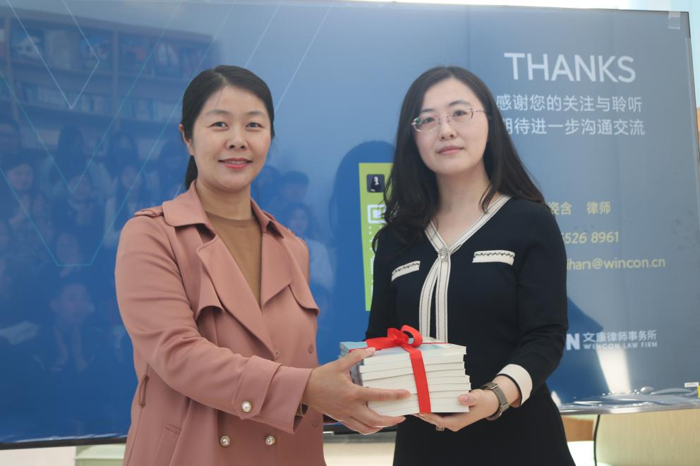 分享会结束后,门姿含代表文康律师事务所向伟德国际1946悦读轩捐赠法律图书,王祥梅代表公司接受了赠书。