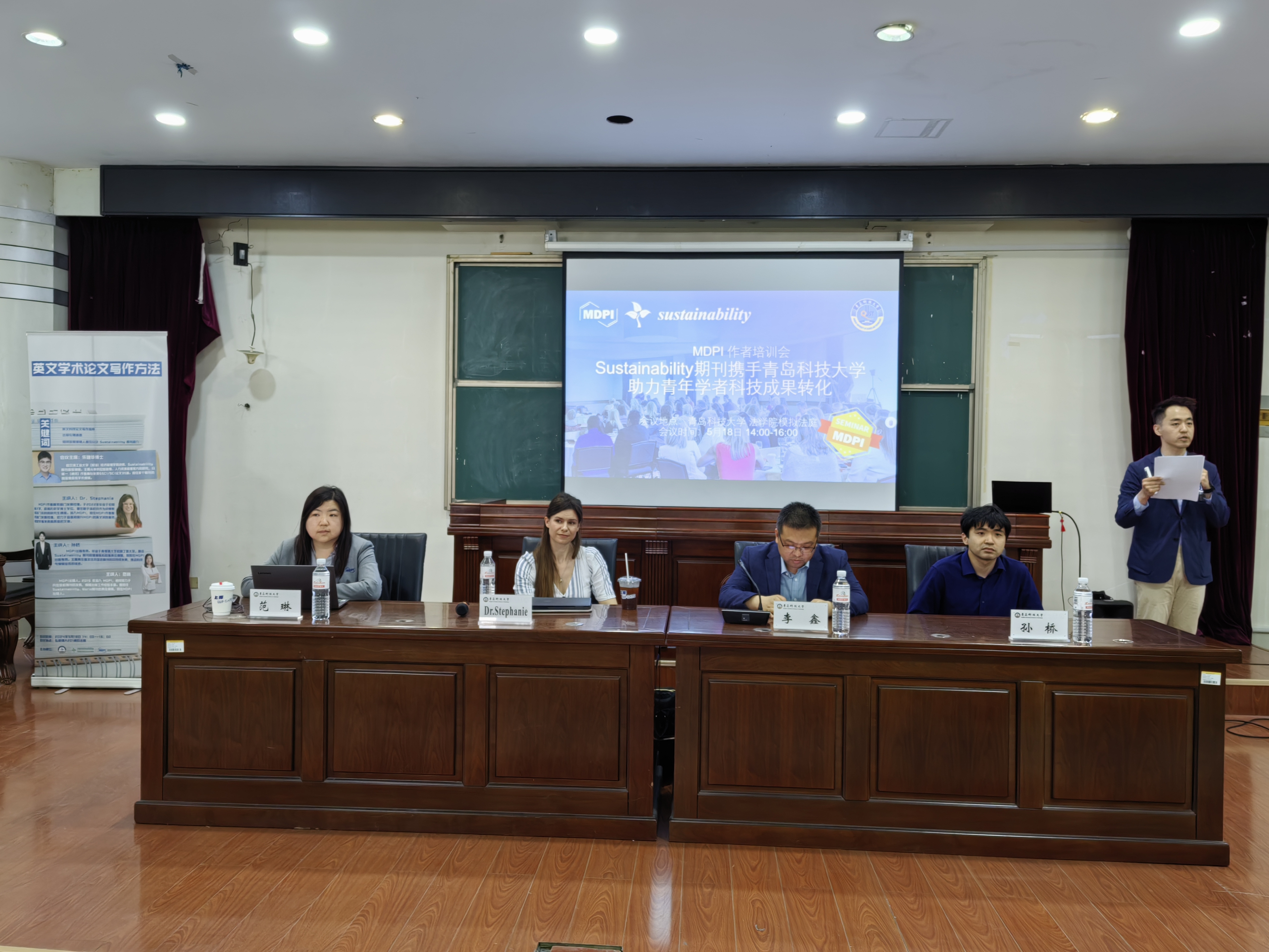 5月18日下午14:00,伟德国际1946在伟德国际1946崂山校区模拟法庭举办了一场主题为“英文学术论文写作方法”的学术讲座。本次讲座特邀Sustainability期刊客座编辑、哈尔滨工业大学讲师朱建华博士,与MDPI出版专员孙桥博士、MDPI作者服务部门发展经理Dr. Stephanie Novasio、MDPI出版人范琳,围绕英文学术论文写作与发表过程中的相关问题进行分析与讲解。本次培训会由伟德国际1946副经理李鑫主持,公司青年教师、研究生共80余人参加。