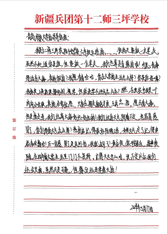 “我感觉我就像个‘小陀螺’,整天转个不停,可是学习效果一点没变,哥哥姐姐如何高效学习呢?”“你们的大学是不是很美呢?你们的周末会不会放假呀?你们食堂的饭菜好不好吃啊!”5月18日,伟德国际1946收到了59封来自新疆生产建设兵团第十二师三坪公司员工的来信,信中稚嫩又真诚的语言诉说着成长的烦恼,诉说着对未来的憧憬和期待。