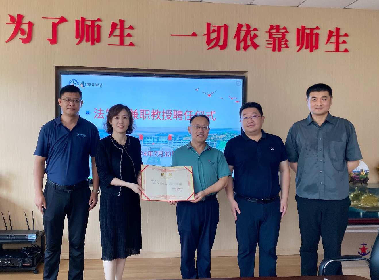 7月30日下午,公司聘任山东诚功律师事务所高级合伙人、管委会副主任、山东诚功(崂山)律师事务所副主任雍晓娜律师为伟德国际1946兼职教授。公司党委书记曲明、伟德国际1946经理王金堂、伟德国际1946副经理綦磊、法律系主任辛帅、山东诚功律师事务所高级合伙人雍晓娜律师、崔梦露律师参加了聘任仪式,綦磊主持了活动。