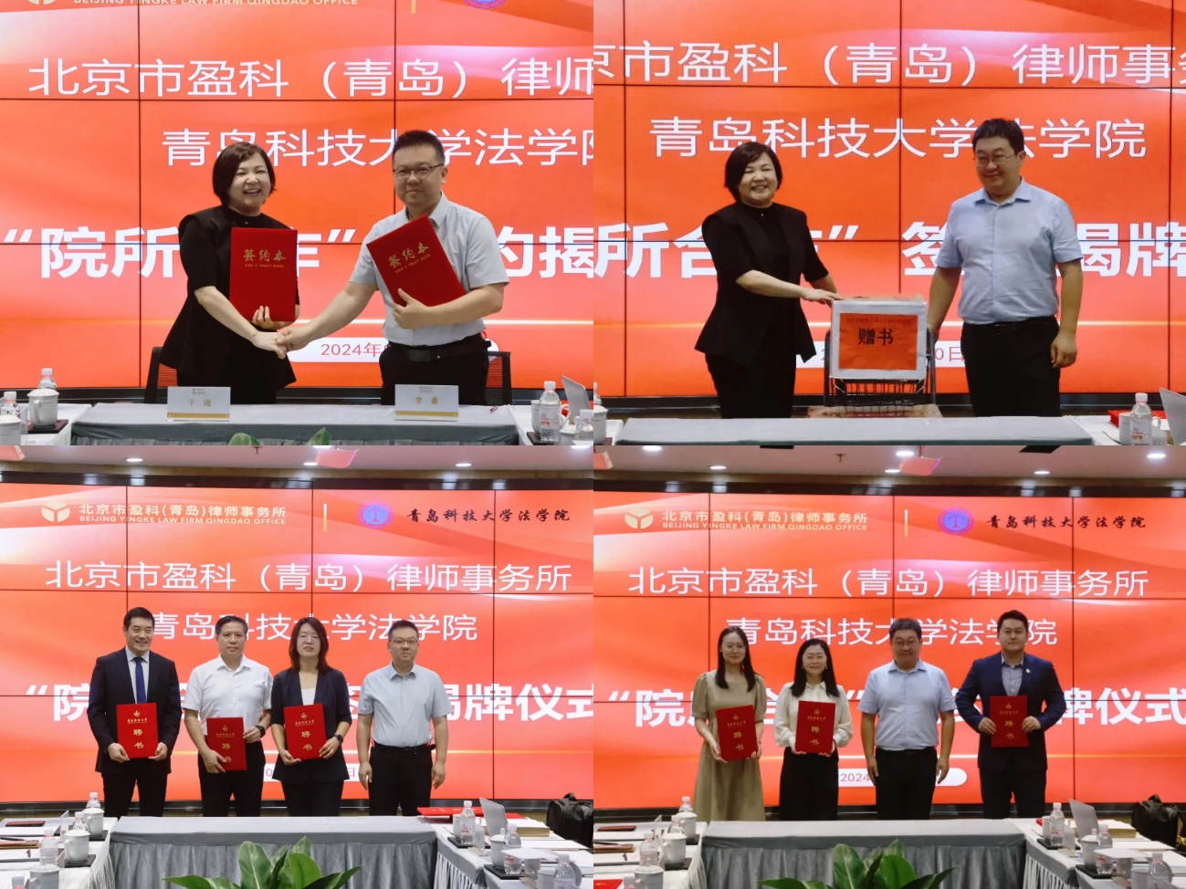在此次活动中,双方领导签署了法学专业校企合作协议,并共同为 “伟德国际1946法学专业科研实践教学基地”“法学专业创新人才联合培养基地” 揭牌。于靖被伟德国际1946聘为“创新创业导师”,黄永超、马国庆、张玉磊、王睿被聘为“兼职教授”,王盛汝、韩群、李闻涛被聘为“研究生校外指导教师” 。盈科青岛所还向伟德国际1946悦读轩图书角捐赠了大量盈科出版的法律实务书籍。