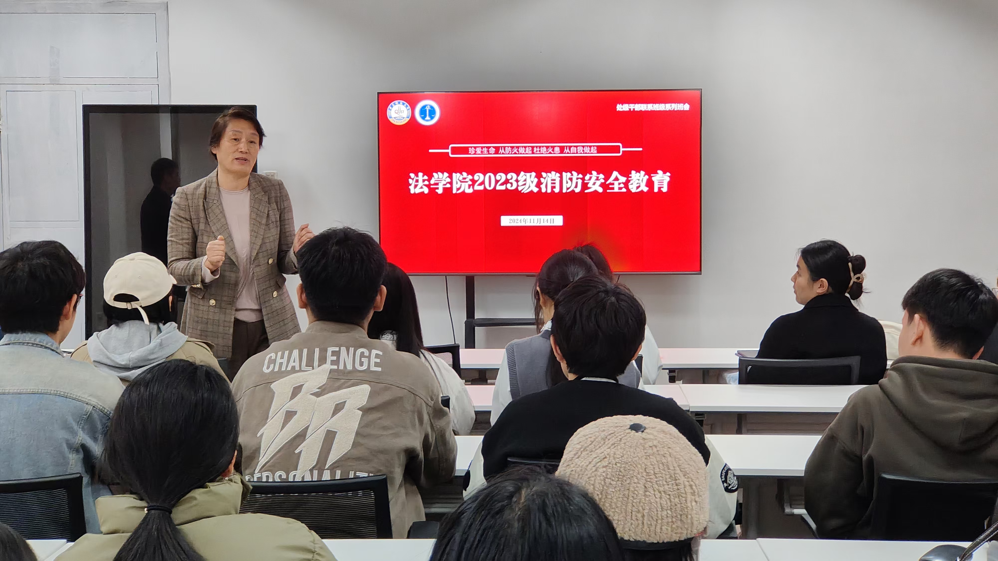 于彦丽结合真实案例,围绕消防安全为同学们上了一堂生动、深刻的安全思政课。她指出,消防安全关乎着同学们的人身、财产安全,同学们要树牢消防安全意识,学习消防安全知识,掌握正确的灭火及逃生方法,降低火灾带来的损失,共建平安校园。