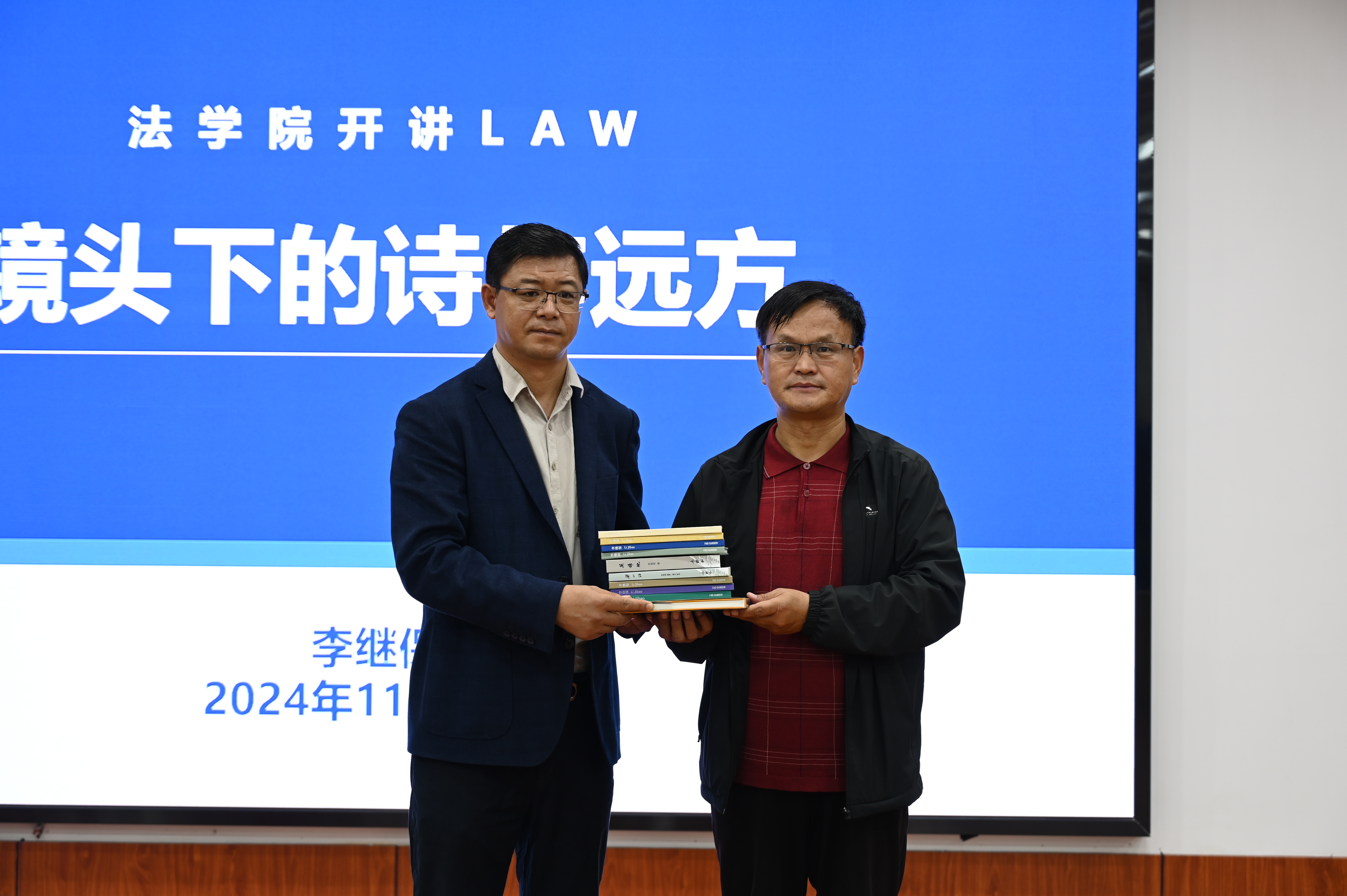李继保为公司悦读轩捐赠了摄影集,并在悦读轩为青年学子解读自己的作品。曲明为李继保颁发校外指导教师证书。