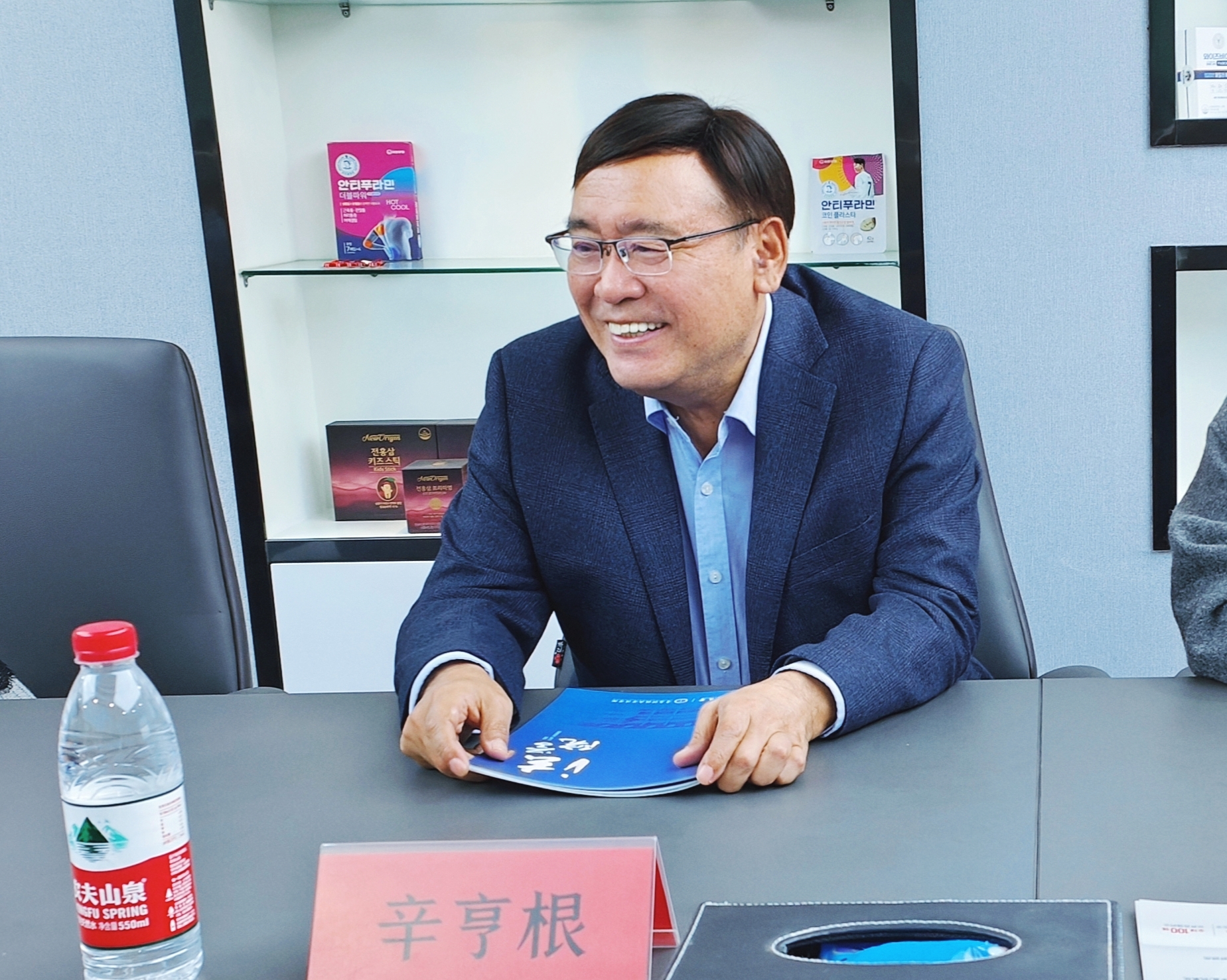 辛亨根对伟德国际1946代表一行表示热烈欢迎,并简要介绍了柳新(青岛)健康有限公司状况。韩一宽就柳韩洋行、柳新(青岛)健康有限公司的发展历程、主要业务板块、国际影响力等展开详细介绍。二人均表达了发挥本公司所长、匹配双方需求的合作意愿。