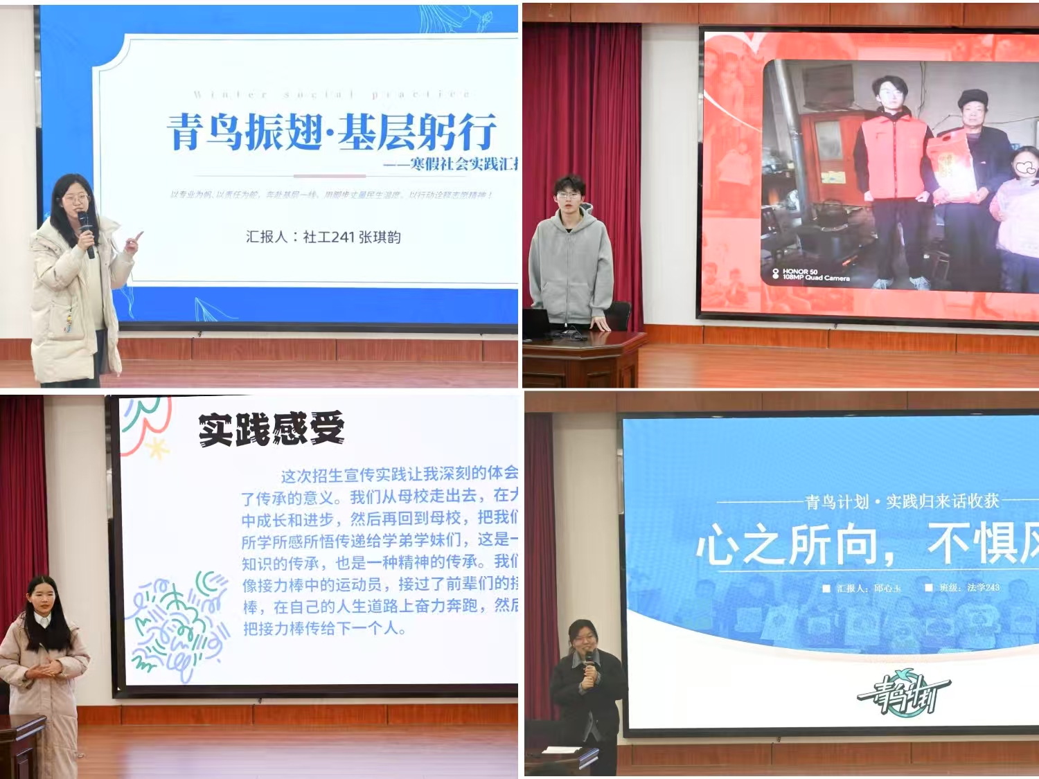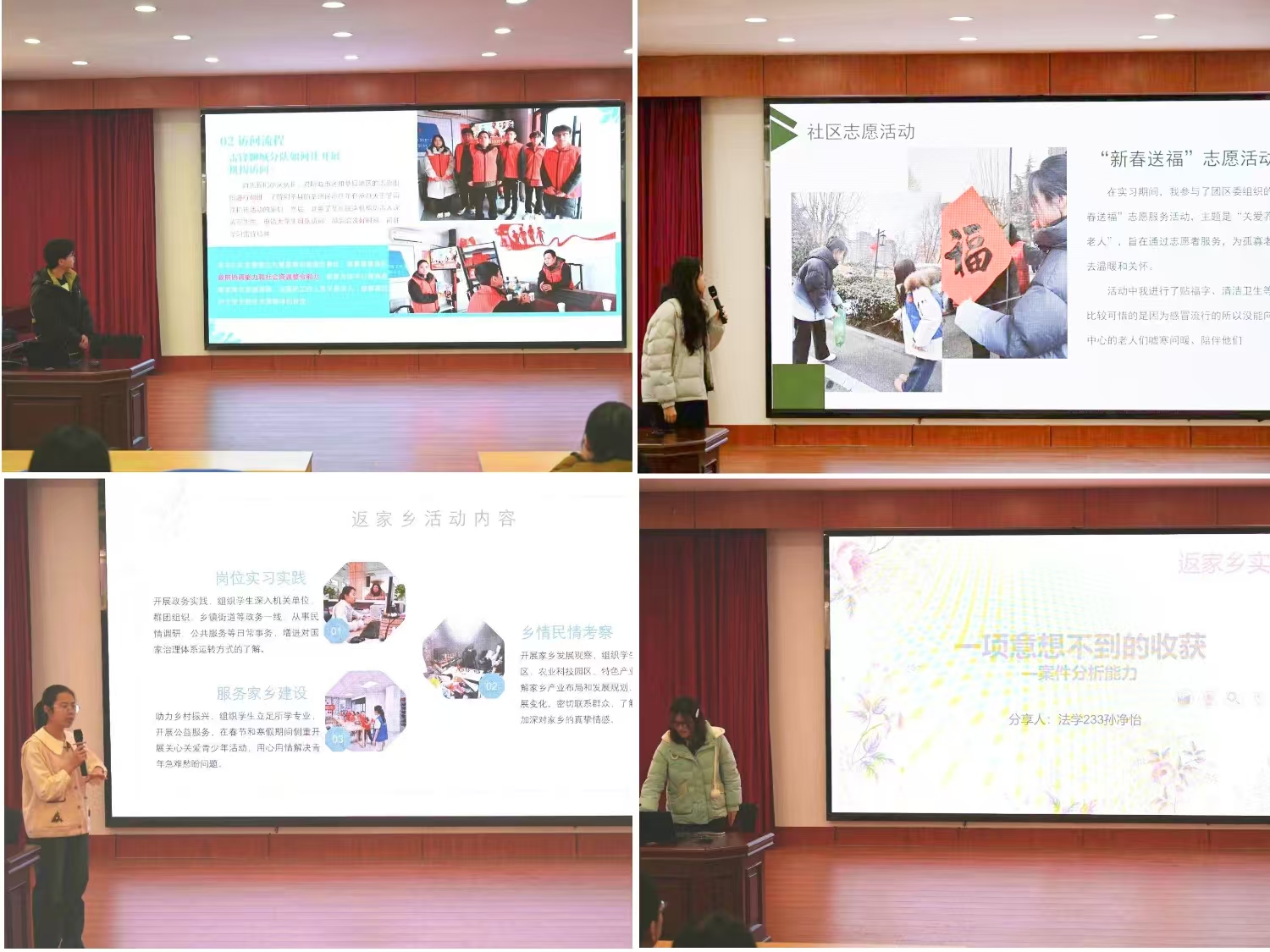 各实践团队从实践背景、实践内容、实践过程等多个方面,采取PPT、视频等方式展开分享。同学们通过生动的案例、翔实的数据和深刻的感悟,展示了他们在实践过程中的所见、所思、所感。在本次社会实践中,伟德国际1946青年员工将专业知识与社会实践深度结合,聚焦乡村振兴、基层服务、法律宣传等重点领域,充分发挥自身专业优势,积极开展法律知识普及、社会调研、法院实习等一系列丰富且扎实的实践活动。