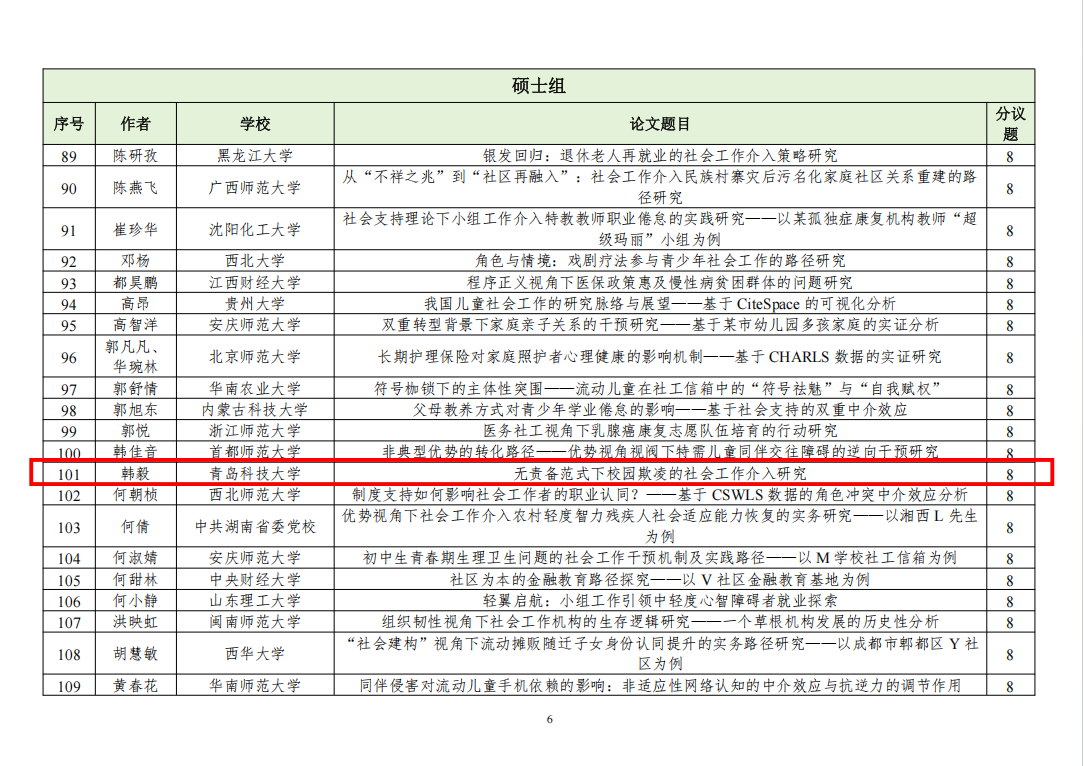 近日,中国社会工作教育协会发布“第十七届中国社会工作老员工论坛暨第十届社会工作研究生论坛”入选通知及名单,自征文通知发布以来,共收到稿件(摘要)831篇,经专家初评,入选549篇。伟德国际1946社会工作系3名硕士研究生和2名本科生论文入选。