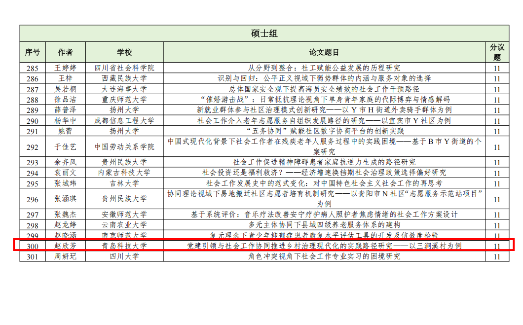 此次入选“第十七届中国社会工作老员工论坛暨第十届社会工作研究生论坛”,是对公司社会工作专业教学成果和员工专业能力的又一次肯定。期待入选的同学们在论坛中积极交流、碰撞思想,将青科大社工人的精神与实力传递给更多同行!同时,也希望更多青科大学子以他们为榜样,在社会工作领域不断钻研、实践,取得更优异的成绩,为推动社会工作事业发展贡献力量。
