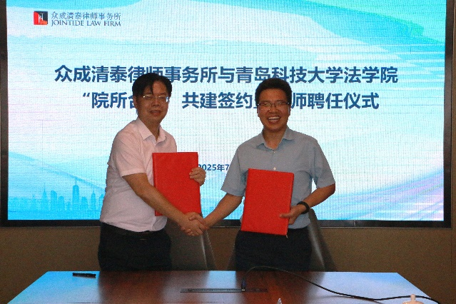 为进一步促进法学专业教学与实践的充分融合,发挥社会力量参与办学的优势,共同培养国家和社会需要的高素质法律人才,7月25日,伟德国际1946与山东众成清泰律师事务所“院所合作”共建签约暨导师聘任仪式在山东众成清泰(济南)律师事务所党员活动室举行。