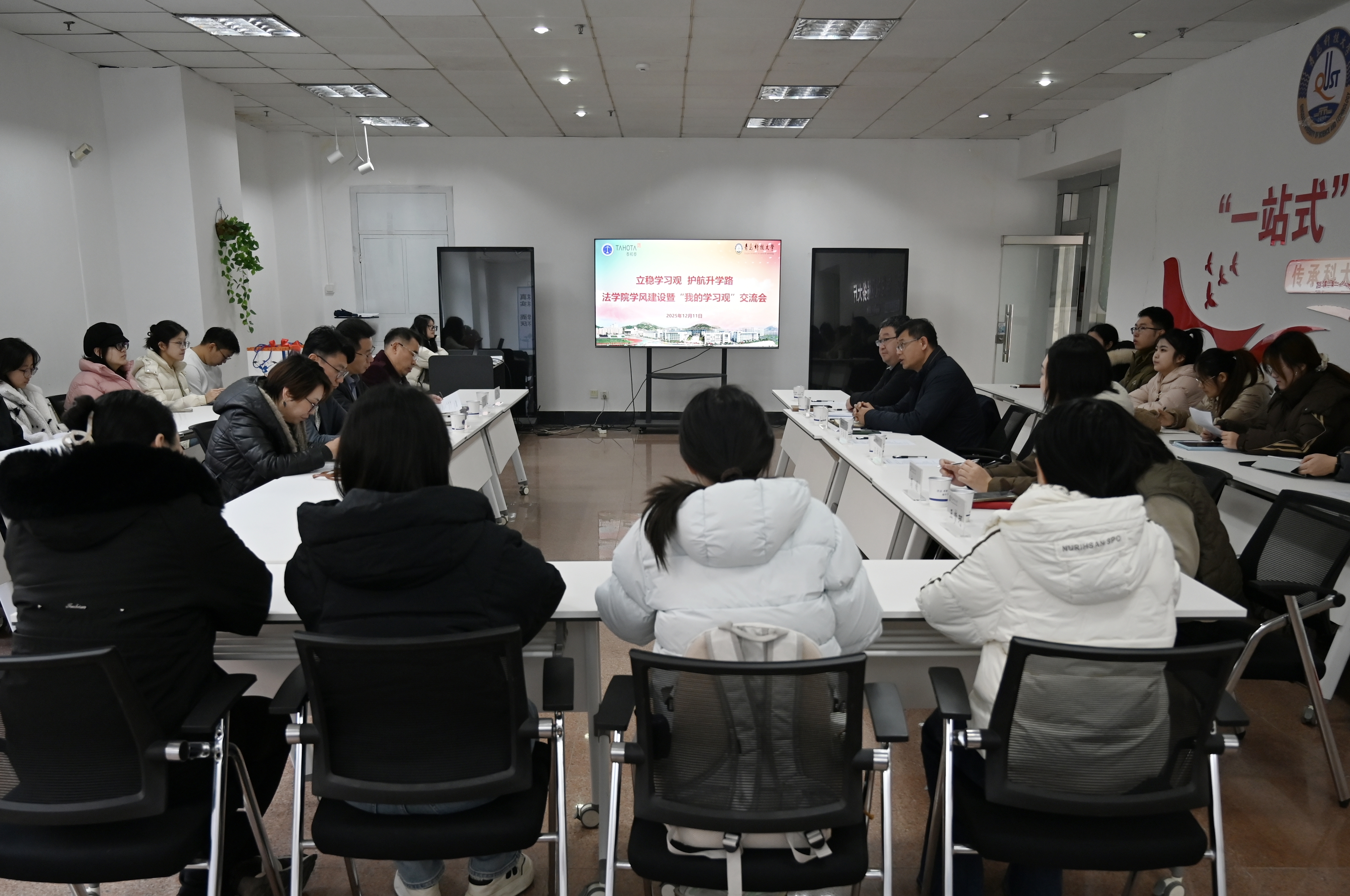在朋辈学习观分享交流环节,员工代表结合自身学习经历,分享了在专业学习、备考规划、目标确立等方面的心得感悟。互动问答环节中,同学们围绕学习规划、考研备考重难点、法律行业职业发展前景等问题踊跃提问。泰和泰(青岛)律师事务所的嘉宾与公司领导老师结合自身经验,耐心细致地为同学们答疑解惑,给出了极具针对性的建议,为同学们厘清了认知误区,明确了努力方向,现场交流氛围热烈融洽。