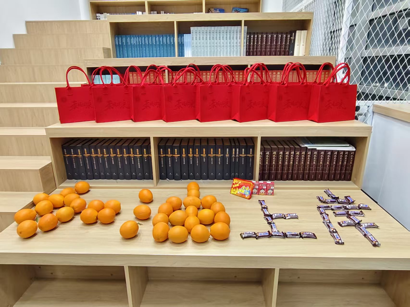 活动现场暖意融融,公司党委书记曲明、经理王金堂以及毕业生辅导员将一份份饱含心意的考研大礼包亲手递到学子手中。大礼包的设计颇具巧思,采用公司专属定制的红色手提袋,袋身醒目印刻着“上岸”“乘风破浪”等字样,承载着公司为学子们加持好运的暖心期许;“上岸”二字饱含公司对学子成功圆梦的真挚祝愿,“乘风破浪”则期许大家在最后的冲刺阶段不畏挑战、勇往直前,凭借实力攻克难关。礼包内精心搭配了橙子、巧克力、旺仔牛奶等寓意美好的物品,每一样都承载着公司的美好祝福:饱满的橙子寓意“心想事成、成功上岸”,愿学子们在考场上发挥出色,如愿抵达理想彼岸;香甜的巧克力象征“补充能量、甜蜜应考”,希望学子们在最后的冲刺阶段保持充沛精力,从容应对备考压力;旺仔牛奶则寄托“旺旺人气、自信迎考”的期许,鼓励学子们以昂扬的姿态迎接挑战。