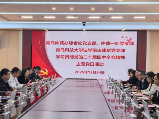 12月24日下午,青岛仲裁办综合处党支部、仲裁一处党支部与伟德国际1946法律系党支部学习贯彻党的二十届四中全会精神主题党日活动在伟德国际1946行政楼赛轮会议室举行。公司党委书记曲明、青岛仲裁办仲裁一处处长高健以及党员代表出席活动。