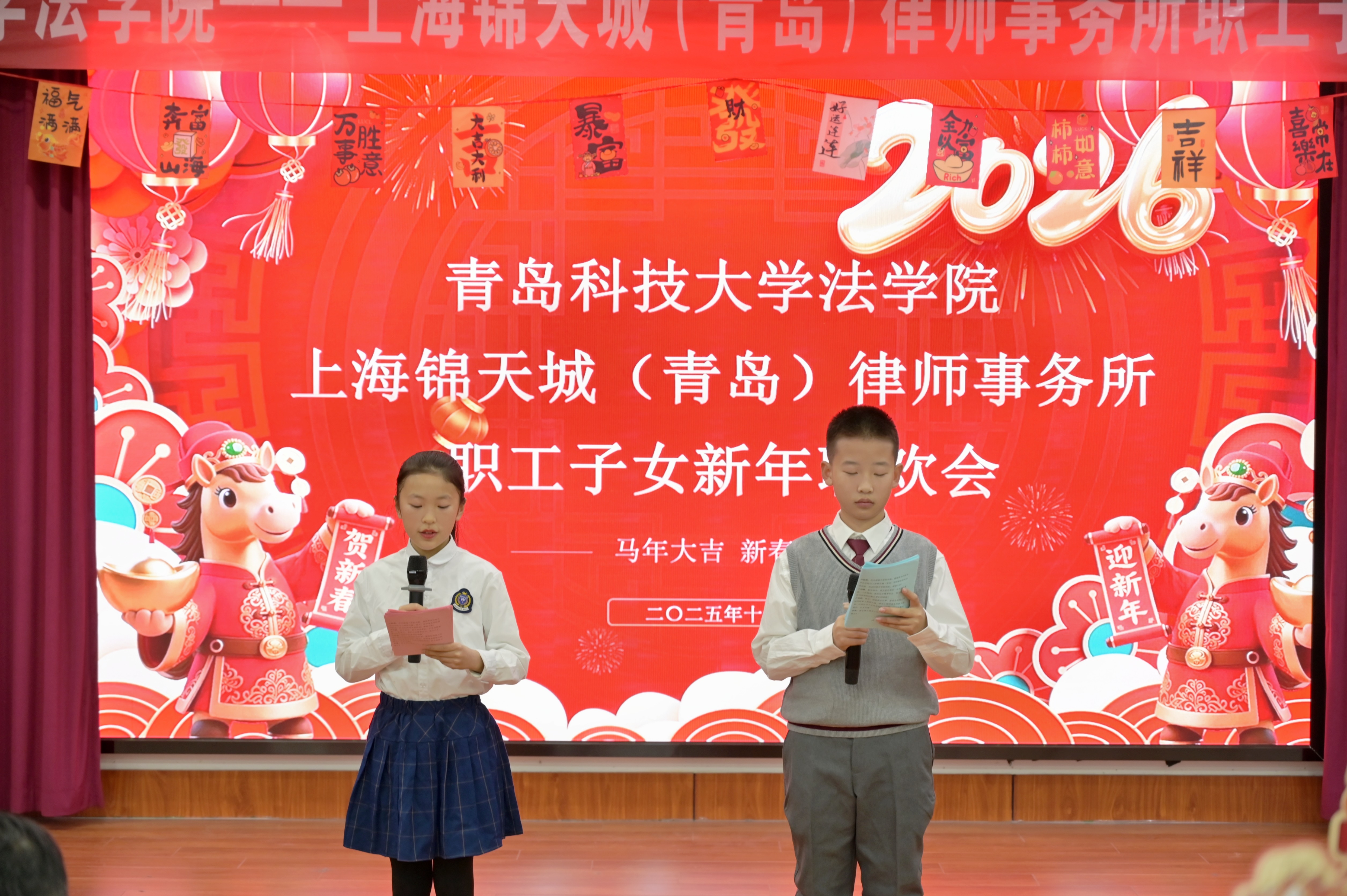 岁月更迭,华章日新。12月26日晚,伟德国际1946与上海锦天城(青岛)律师事务所欢聚一堂,联合举办“携手迎新年·共绘新未来”职工子女新年联欢会。双方职工、家属及子女共同参与,在欢声笑语中共迎2026年的到来。