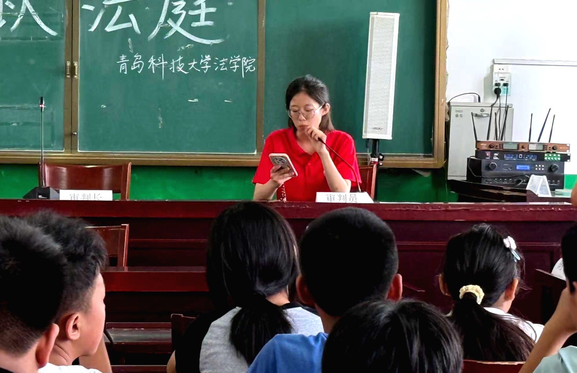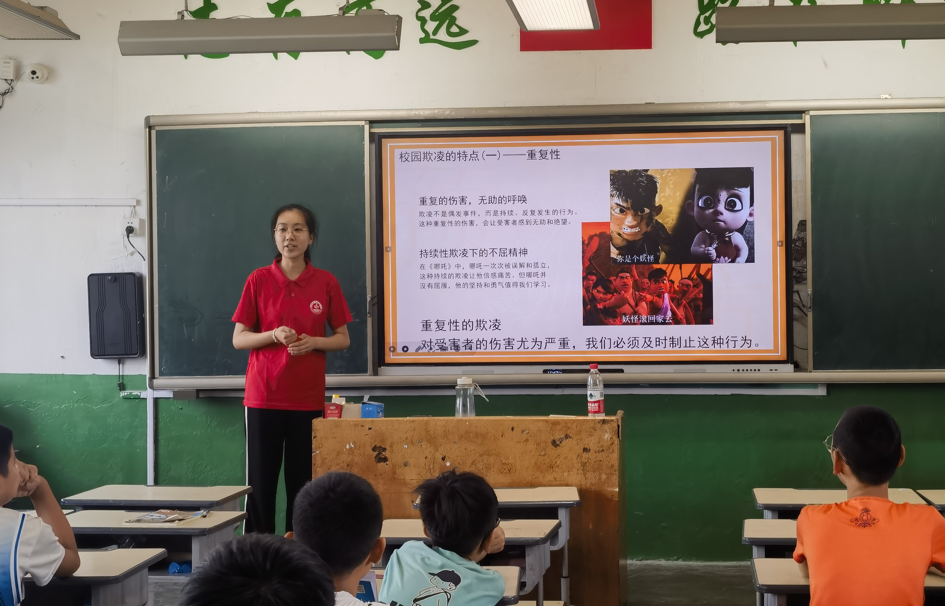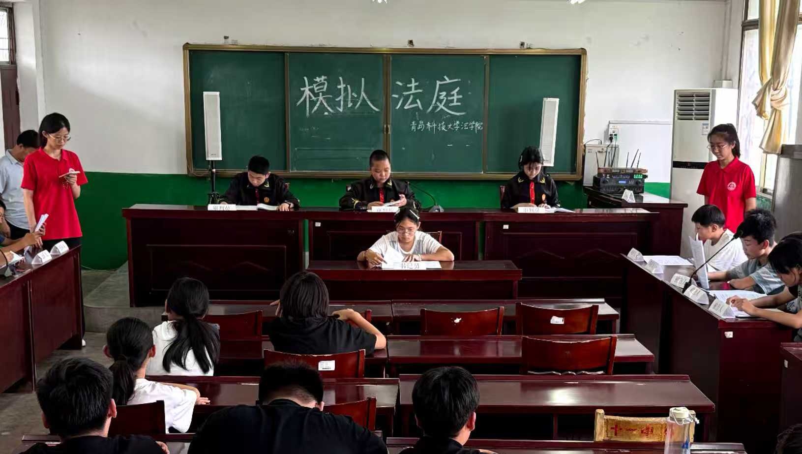 团队成员充分发挥专业特长,构建“情境教学-角色体验-互动反思”三维普法体系,开展普法游乐园活动。在“校园欺凌普法小讲堂”上,成员们将孩子们熟悉的哪吒形象融入普法教育,通过情景剧、互动问答等形式,教会孩子们如何运用法律武器维护自身权益。在模拟法庭上,孩子们化身“审判长”“辩护人”,于庄严肃穆的“庭审”过程中感受法治的威严与力量。
