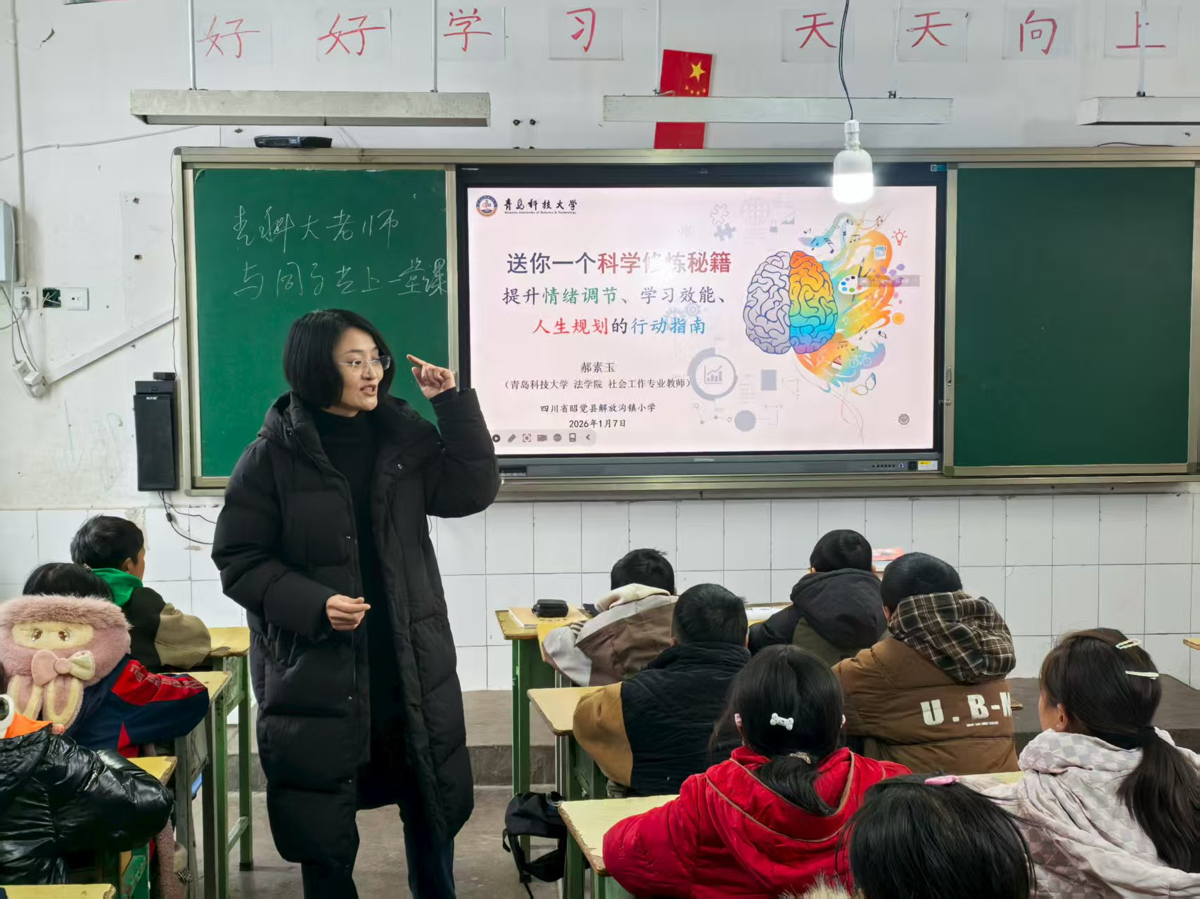 随后,曲明一行来到昭觉县解放沟镇中心小学,捐赠由山东教育集团赞助的500册精品图书,并发放由伟德国际1946筹备的500套御寒用品。并与员工们同上一堂课,郝素玉老师围绕小员工情绪调节、学习效能提升和人生规划等内容进行生动授课,为孩子们心中种下走出大山的种子。