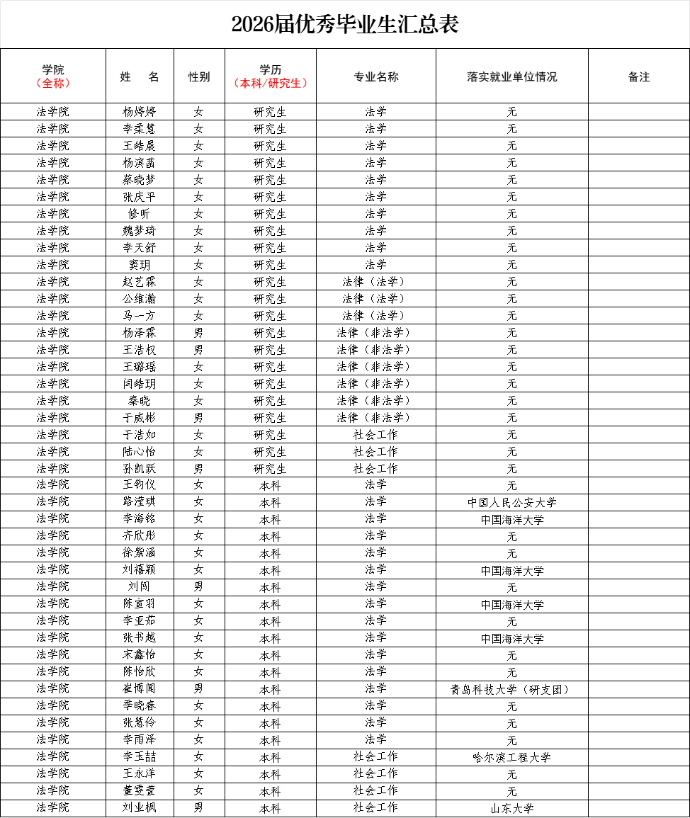 根据公司《关于开展2026届优秀毕业生评选工作的通知》的要求,经个人申请、资格审查,拟确定2026届优秀毕业生人员名单,现予以公示,公示期3个工作日。公示时间:2025年12月15日-2025年12月18日。