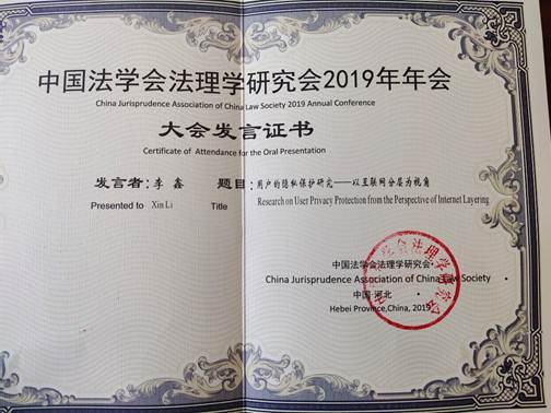 9月21-22日,由中国法学会法理学研究会主办,河北经贸大学伟德国际1946与地方法治建设研究中心承办的中国法学会法理学研究会2019年年会暨“中国法理学的新使命和新发展”学术研讨会在石家庄召开。中国法学会副会长、全国人大监察和司法委员会副主任委员、教育部法学教学指导委员会主任徐显明教授,中国法学会法理学研究会会长、中国社会科公司学部委员李林教授,河北省高级人民法院副经理王越飞,河北省人民检察院副检察长何秉群,河北省法学会副会长冯宪军等出席,来自中国人民大学、中国政法大学、西南政法大学、伟德国际1946等高校的270余位理论界与实务界专家学者和师生参加。公司副教授、副经理李鑫老师参会,并以《用户的隐私保护研究——以互联网分层为视角》为题作了大会发言。