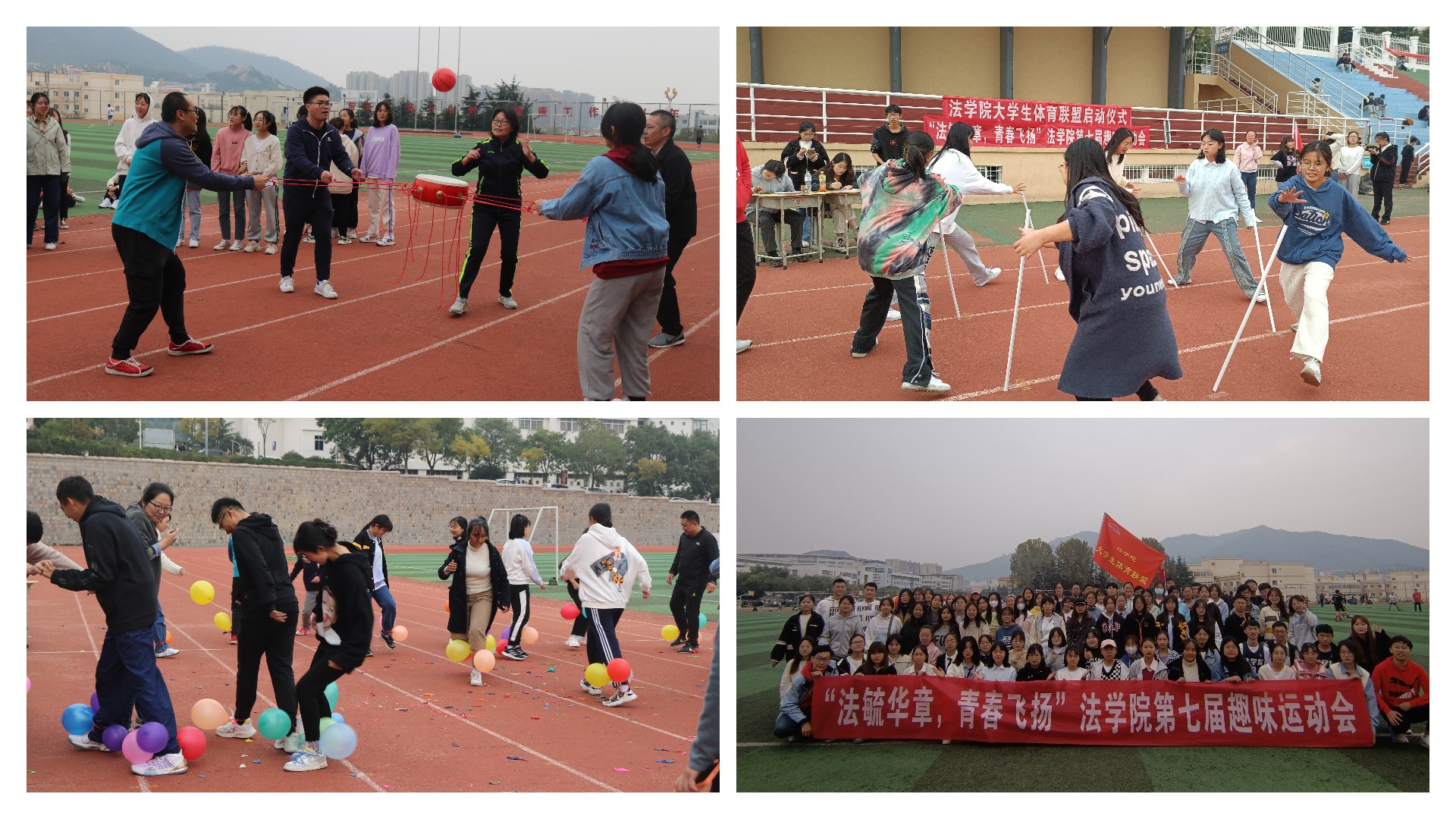 随后,“法毓华章,青春飞扬”第七届趣味运动会正式开始。趣味运动会共设置踩气球、鼓动人心、背投沙包等6个项目。比赛场上,公司工会教师代表队与员工参赛队伍同台竞技,各参赛队队员齐心协力,相互合作,屡创佳绩,比赛精彩纷呈。场外的同学呐喊助威,现场气氛热烈。