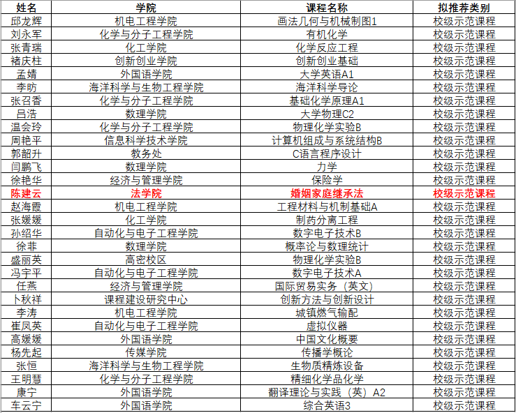根据山东省教育厅《关于开展2022年省级课程思政示范项目建设工作的通知》要求,公司近期组织开展了2022年校级课程思政示范课程评选及山东省课程思政示范课程遴选推优工作。经个人申报,公司推荐,校内外专家评审,本科教学工作委员会审议,共评选出2022年校级课程思政示范课程30门。公司陈建云老师负责的课程《婚姻家庭继承法》获伟德国际1946课程思政示范课程。